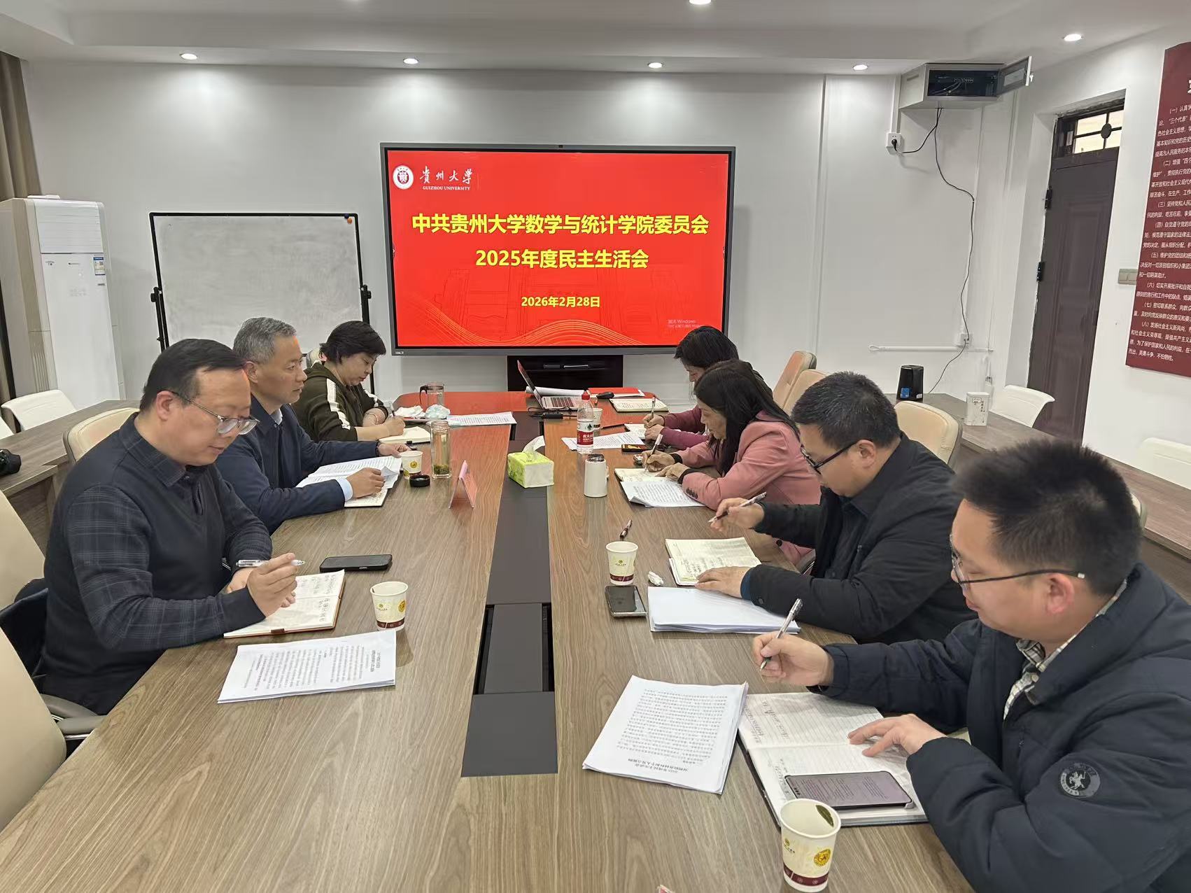 2月28日下午,数学与统计学院召开2025年度党委领导班子民主生活会。校党委常委、副校长王锦荣到会指导并作点评讲话,学院领导班子全体成员参加会议,学院党委书记于松主持会议。