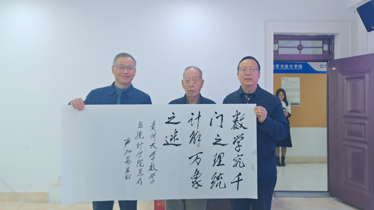 报告结束后,严加安院士应邀为我院题词:“数学究千门之理,统计解万象之迷。”此语既是对数学与统计学科使命的高度凝练,亦为在场师生指明了从理论到实践、从抽象到应用的治学方向。
