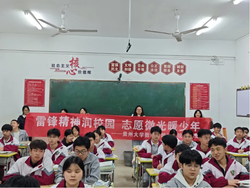 春风送暖,精神传扬。在学雷锋志愿服务月期间,为传承和弘扬雷锋助人为乐的核心精神,发挥研究生专业优势,搭建高校与高中的知识共享桥梁,3月27日,贵州大学数学与统计学院研究生团总支组织学院研究生志愿者,前往铜仁市松桃县民族中学,开展"雷锋精神润校园,志愿微光暖少年"学雷锋志愿助学活动,为当地高一学生送去数学学习指导与关怀。